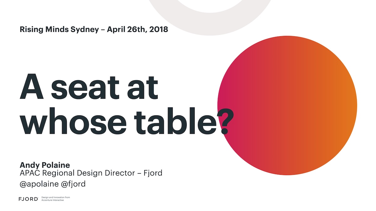 On the politics of design's place in organisations. Presented at Rising Minds, Sydney, 2018.